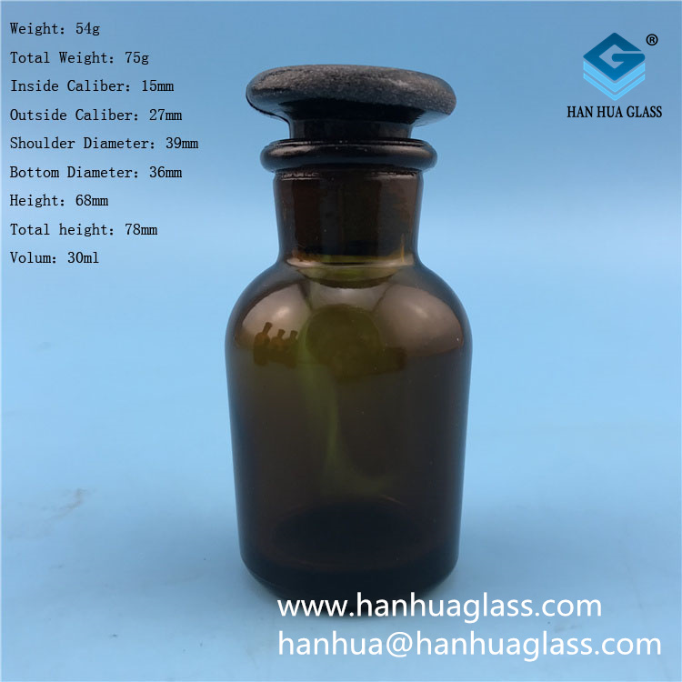 30ml small mouth brown glass reagent bottle